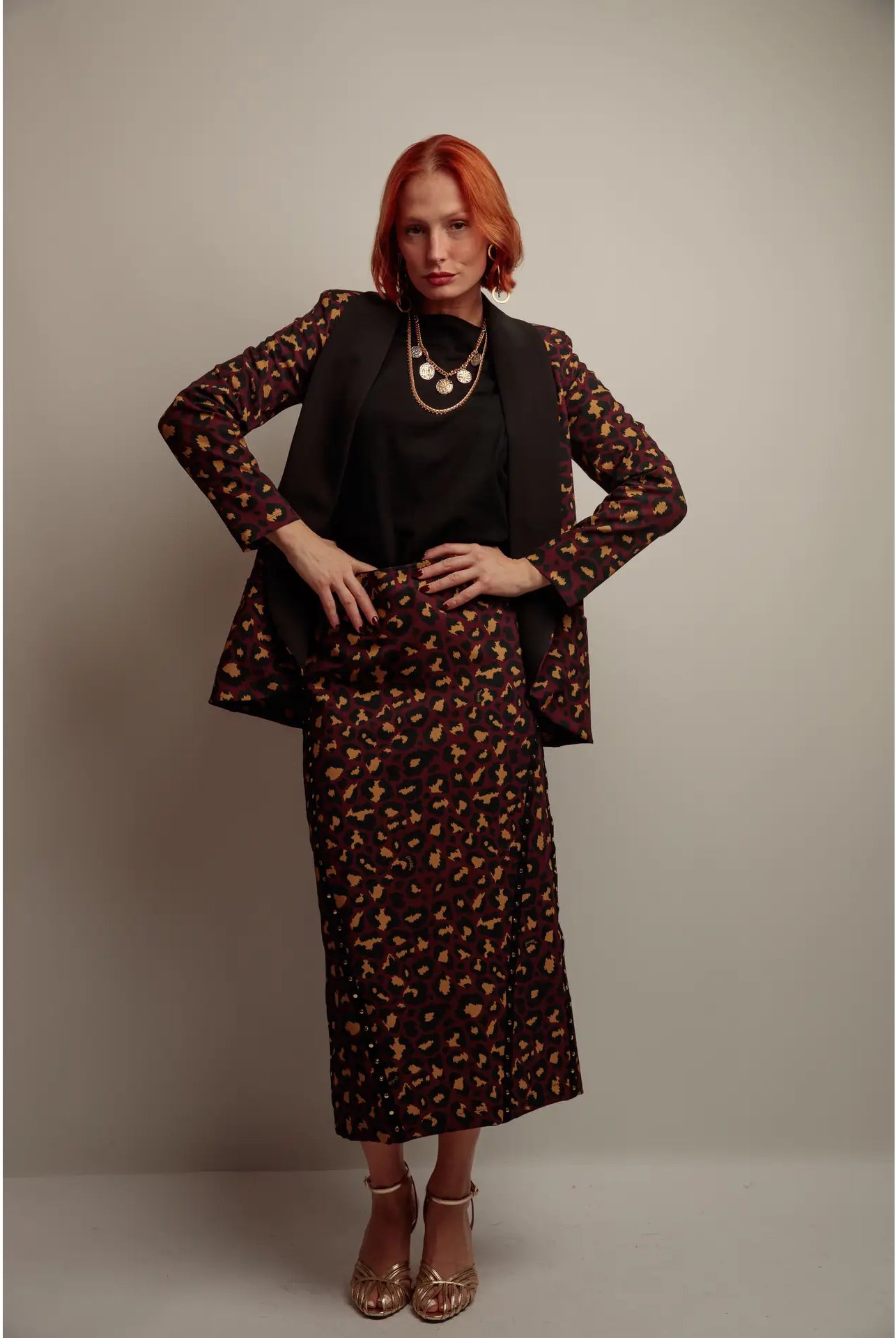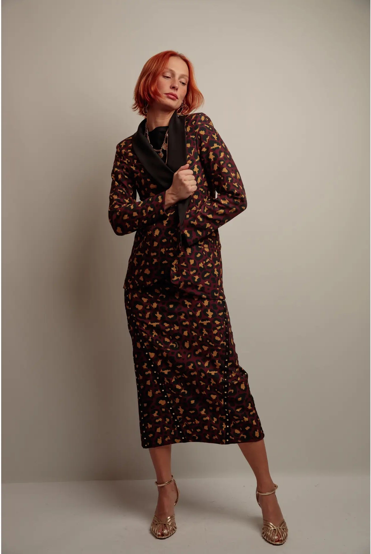 🔹 Conseil mode : Associez-la à des sandales dorées ou des bottines noires pour un look de soirée chic et affirmé