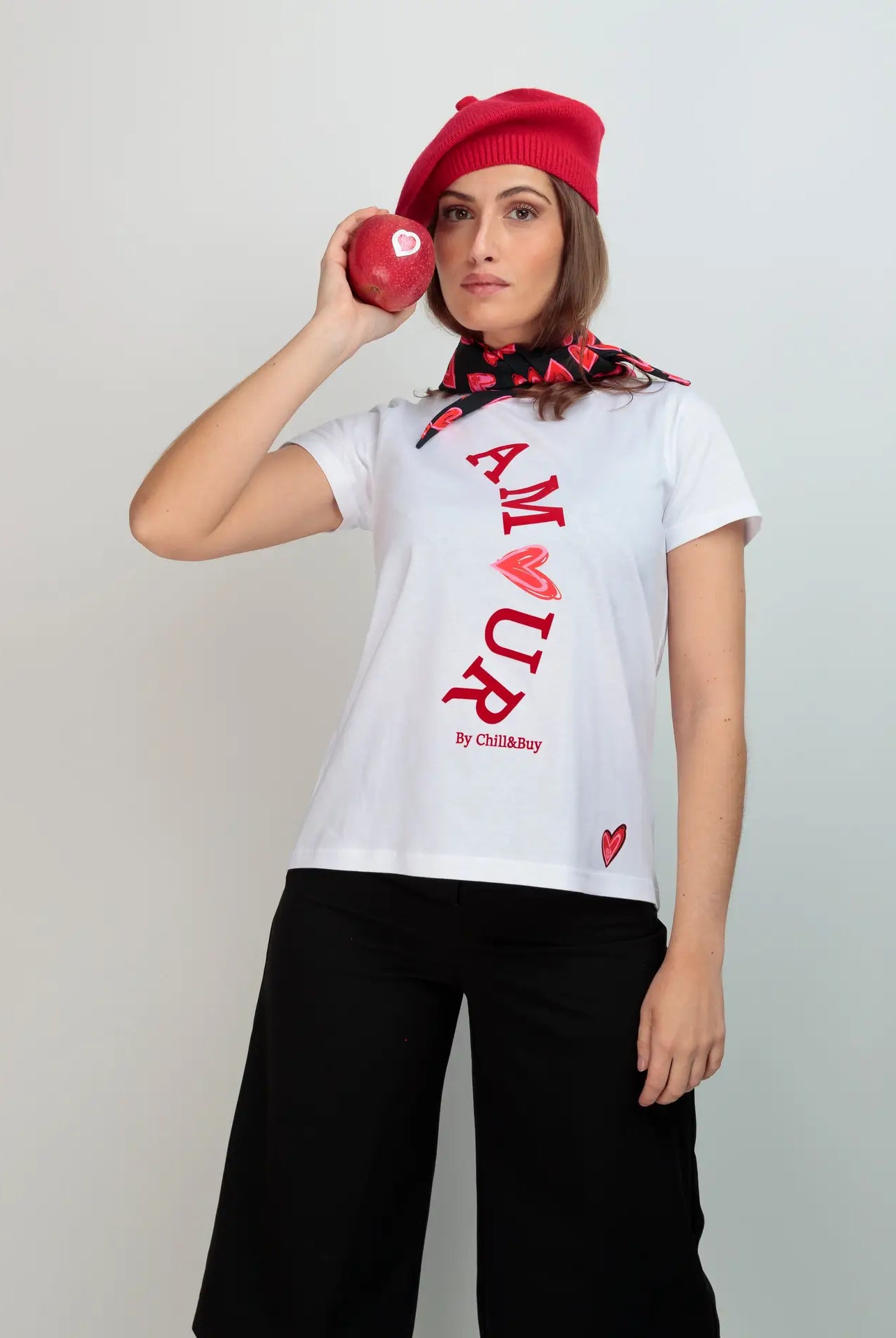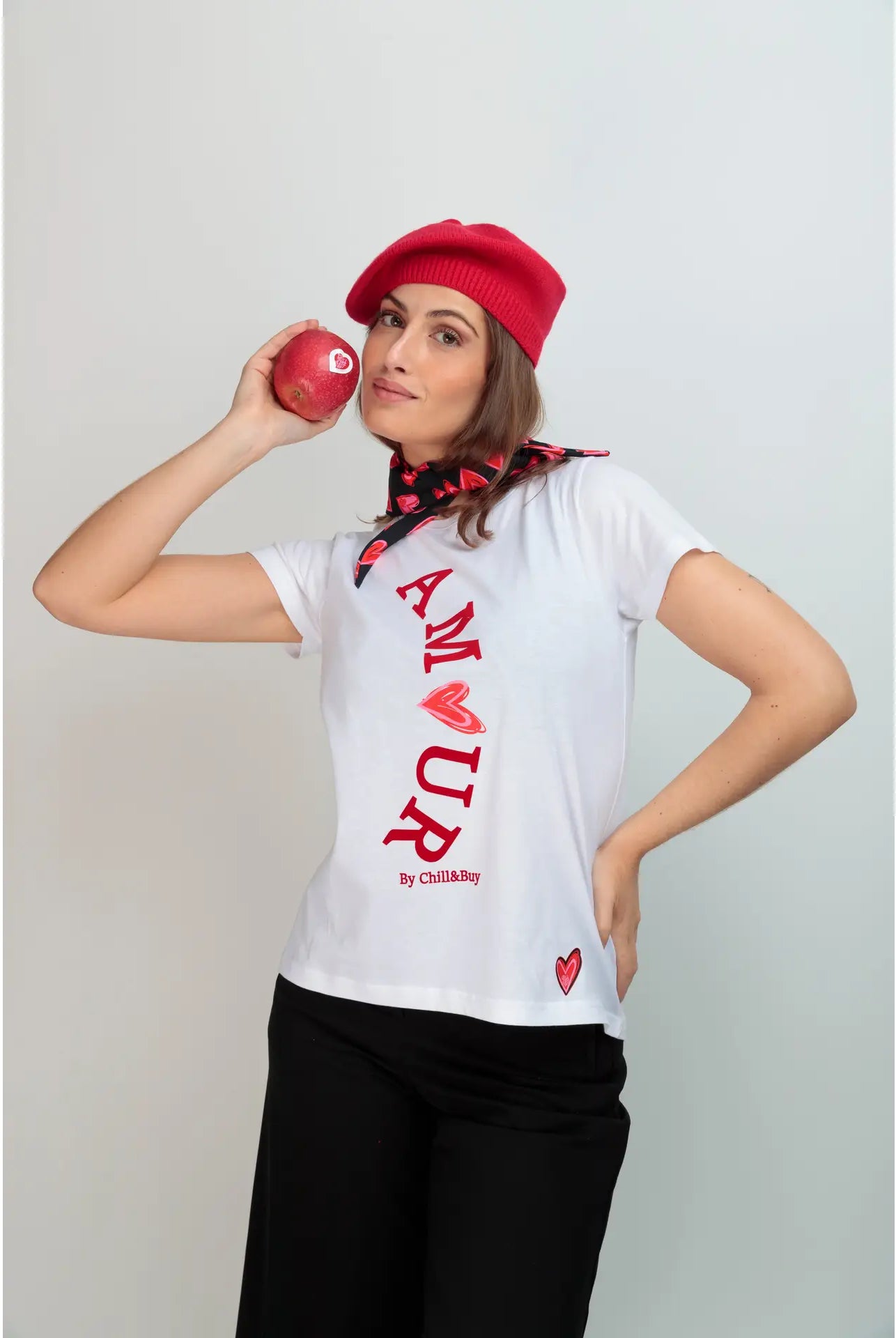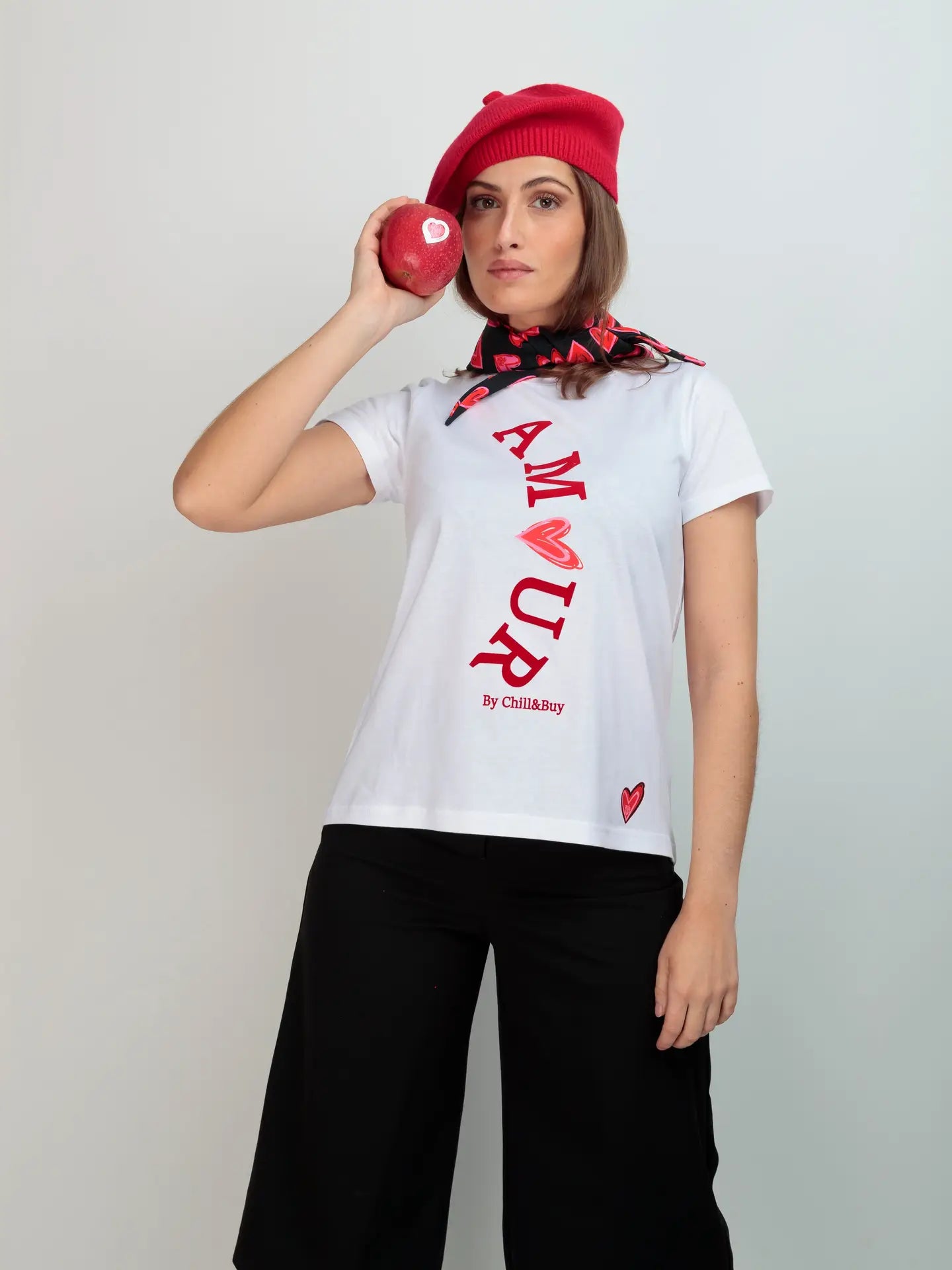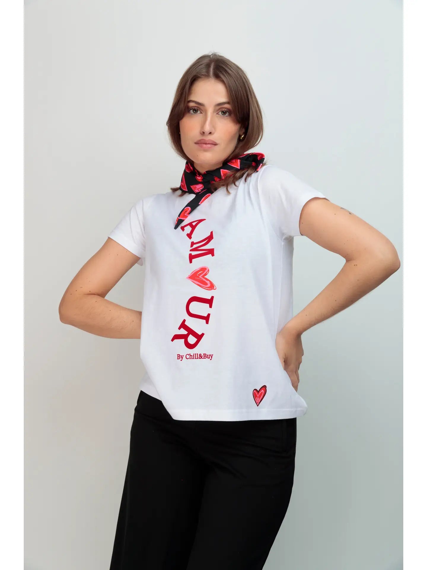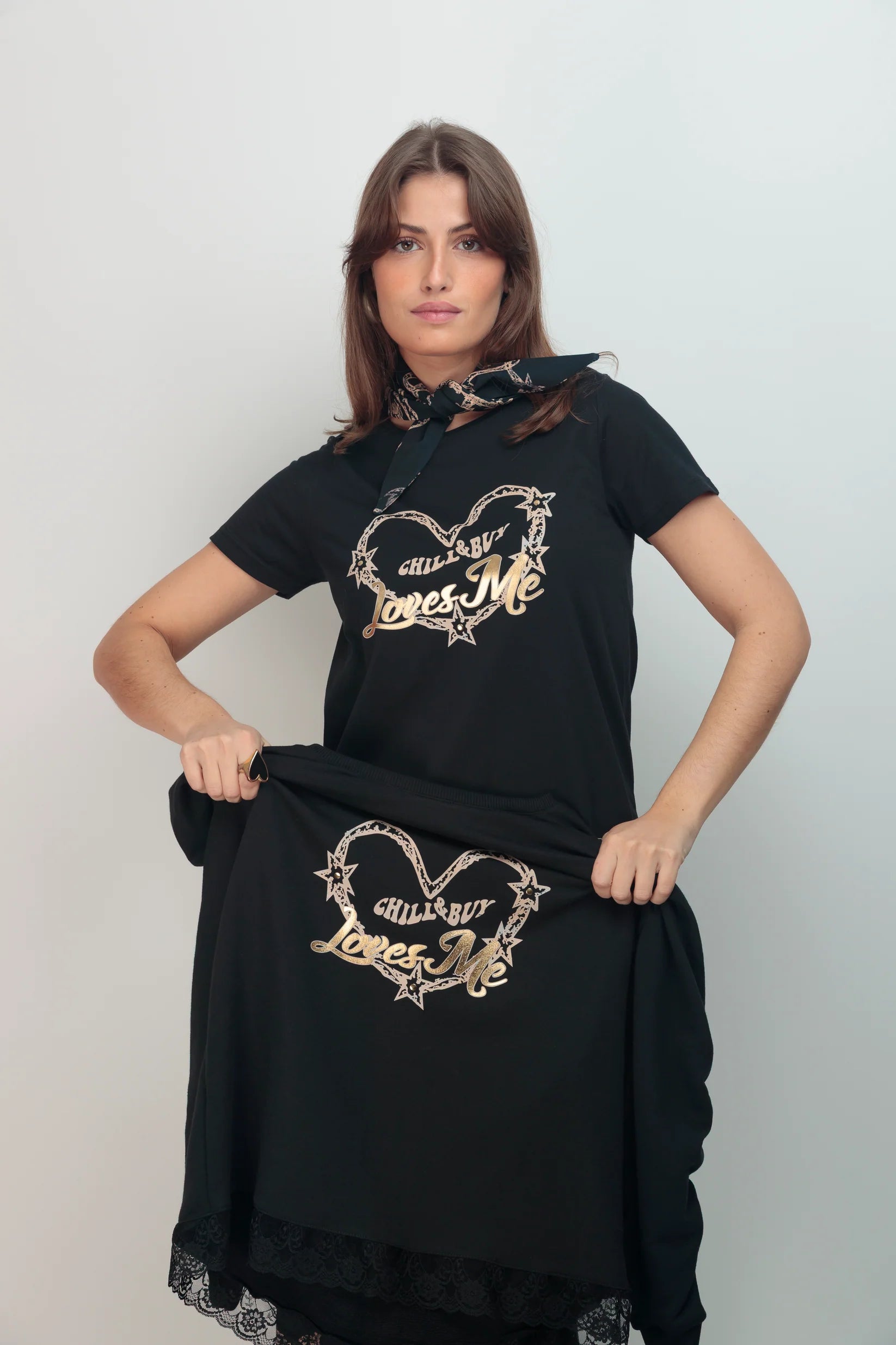 🔹 Details marquants : Revers classiques, poches de plastron fonctionnelles, imprime coeurs rouges sur fond noir, message contraste “Love Me More” au dos