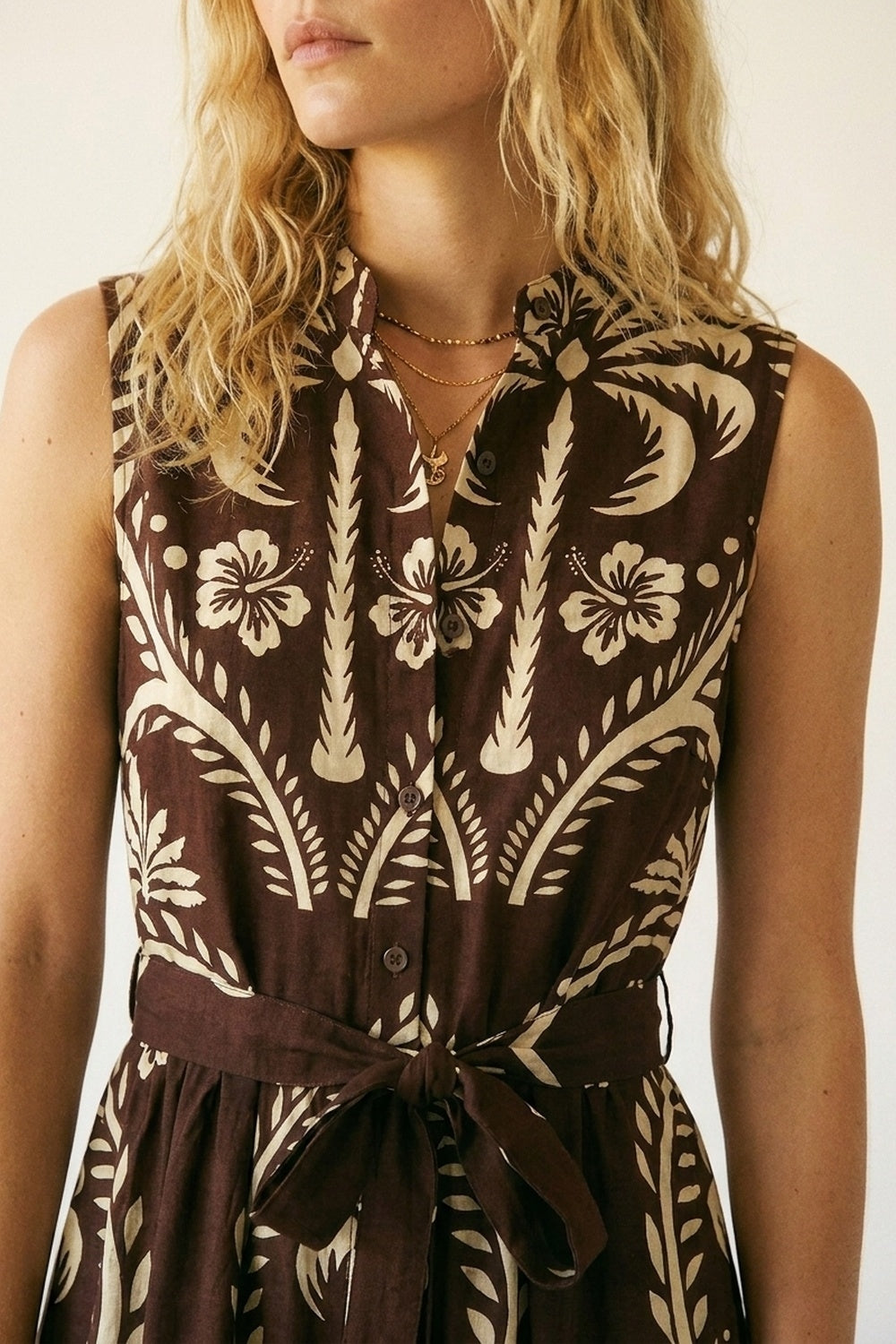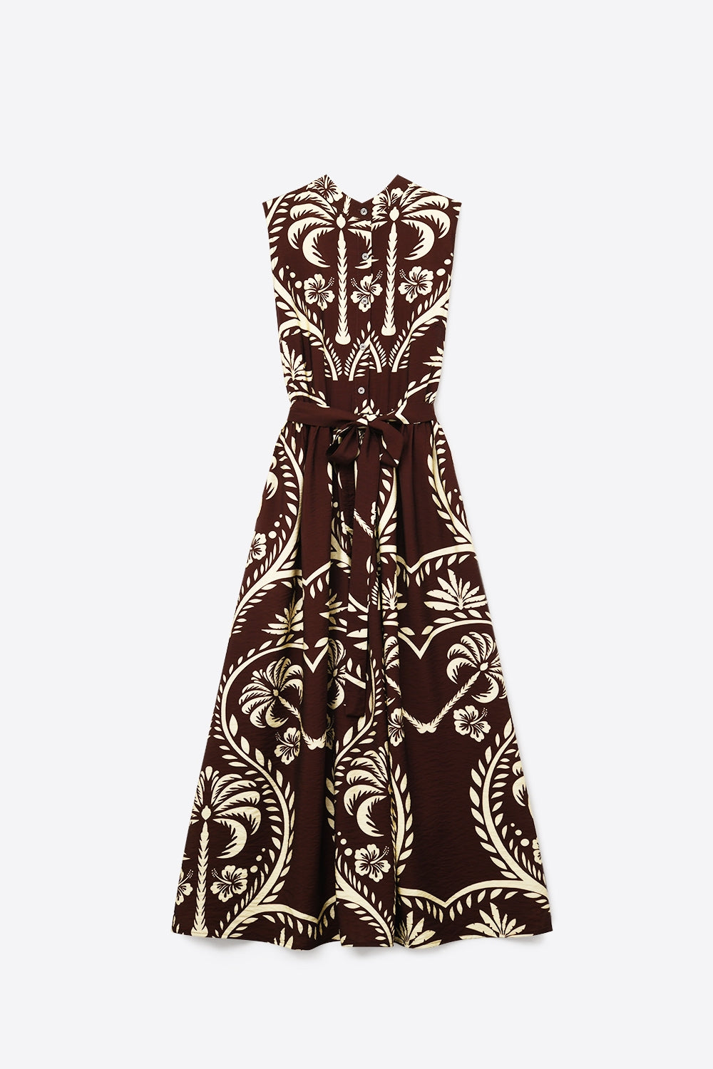 Une robe longue qui allie fluidite et presence avec son imprime ton sur ton et ses details aux epaules. Sa coupe epuree et ses fentes laterales en font une piece confortable et facile a porter en toute occasion.