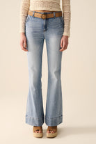 jeans évasés en délavé clair fabriqués en denim de haute qualité