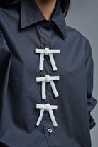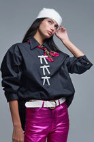 Chemise noire en popeline surdimensionnée avec boutons en perles blanches