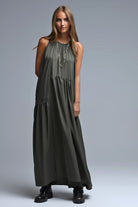 🔹 Coupe / Forme : Longue, coupe décontractée, col licou, dos à liens réglables