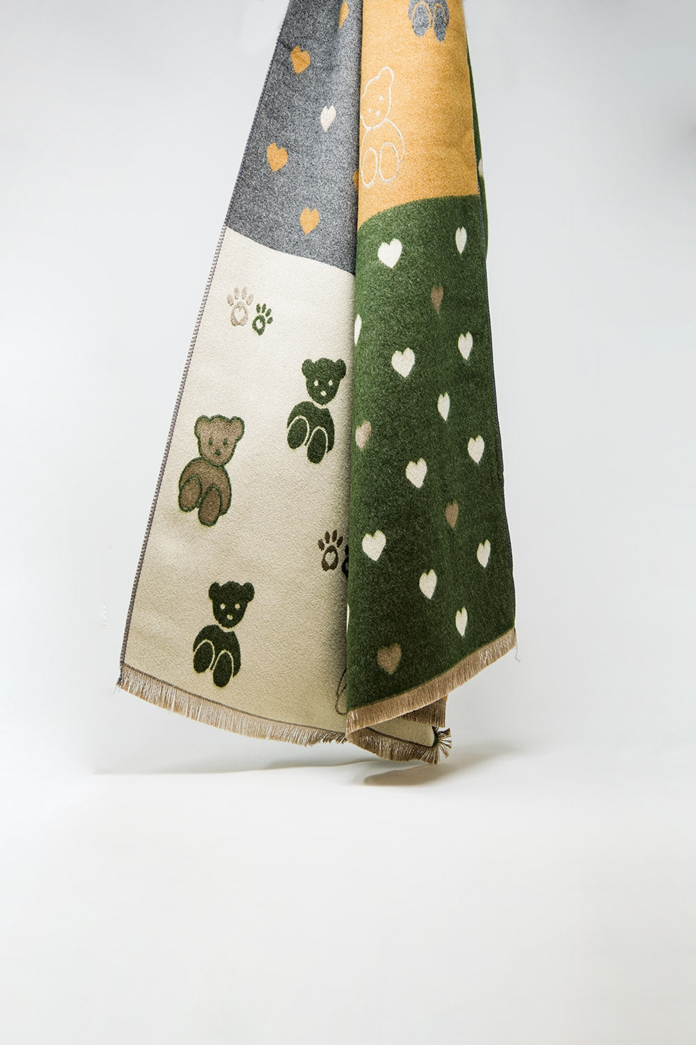Écharpe tricotée avec imprimé ourson et cœur en vert