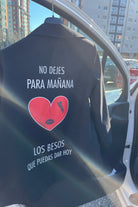 🔹 Détails marquants : Impression au dos avec message et cœur rouge, clous argentés sur la solapa et le bord des poches, poches plaquées