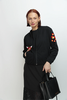 Un bomber noir revisité avec des touches vibrantes qui mêlent simplicité et caractère. Ses broderies colorées et son inscription audacieuse à l'arrière apportent une note optimiste et pleine d'énergie.