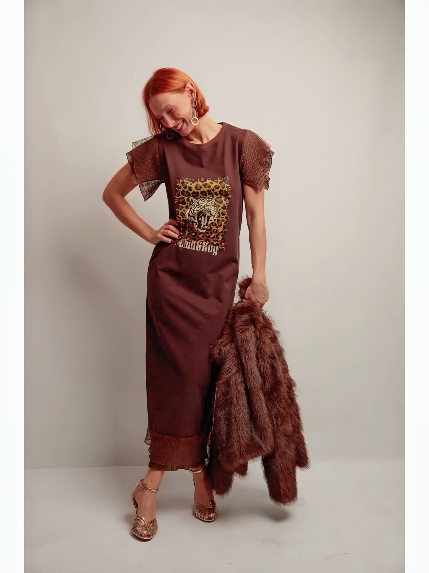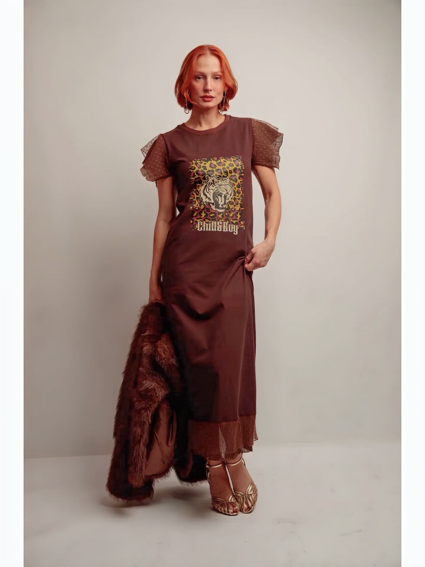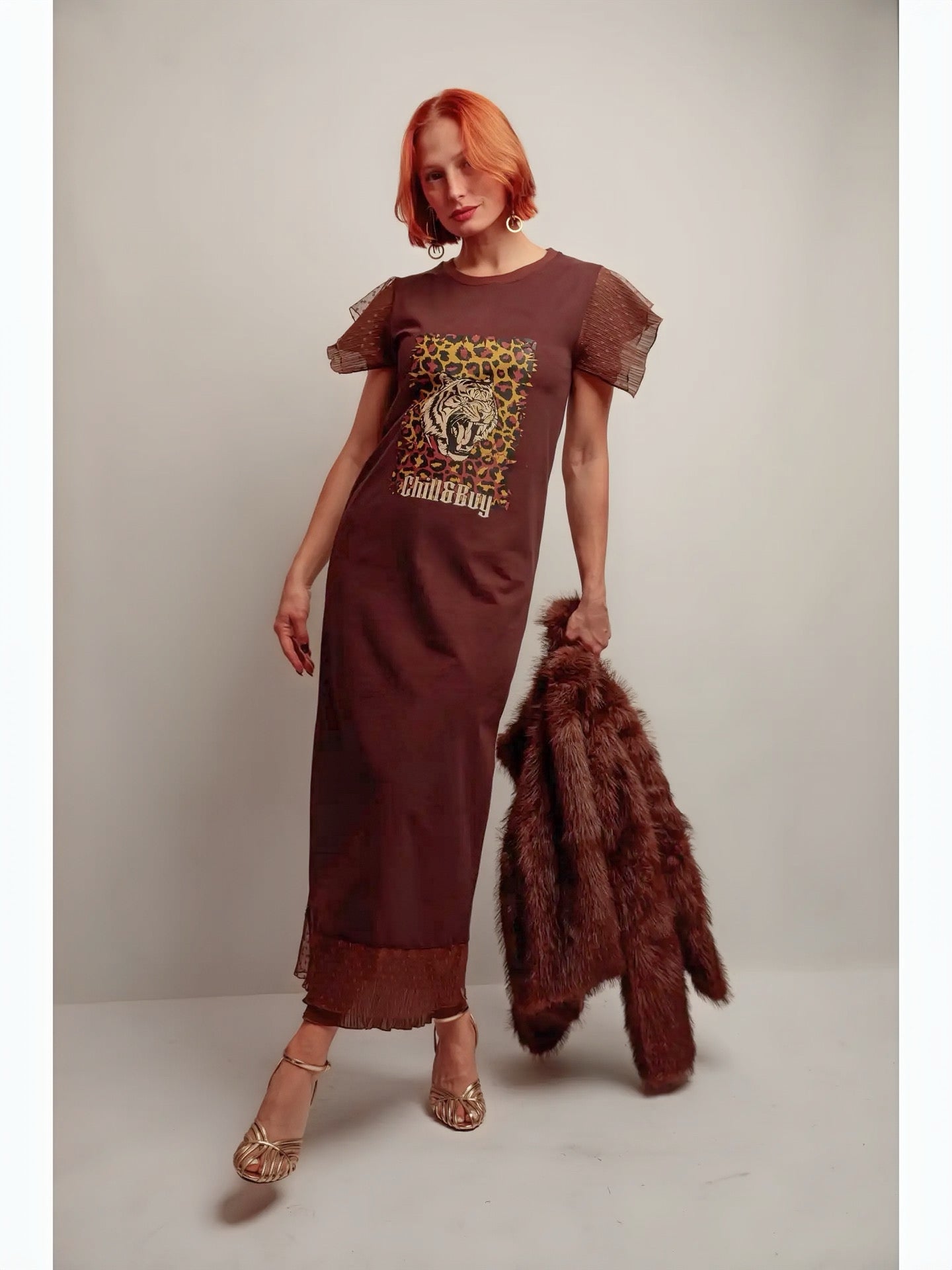 Robe marron imprimé tigre