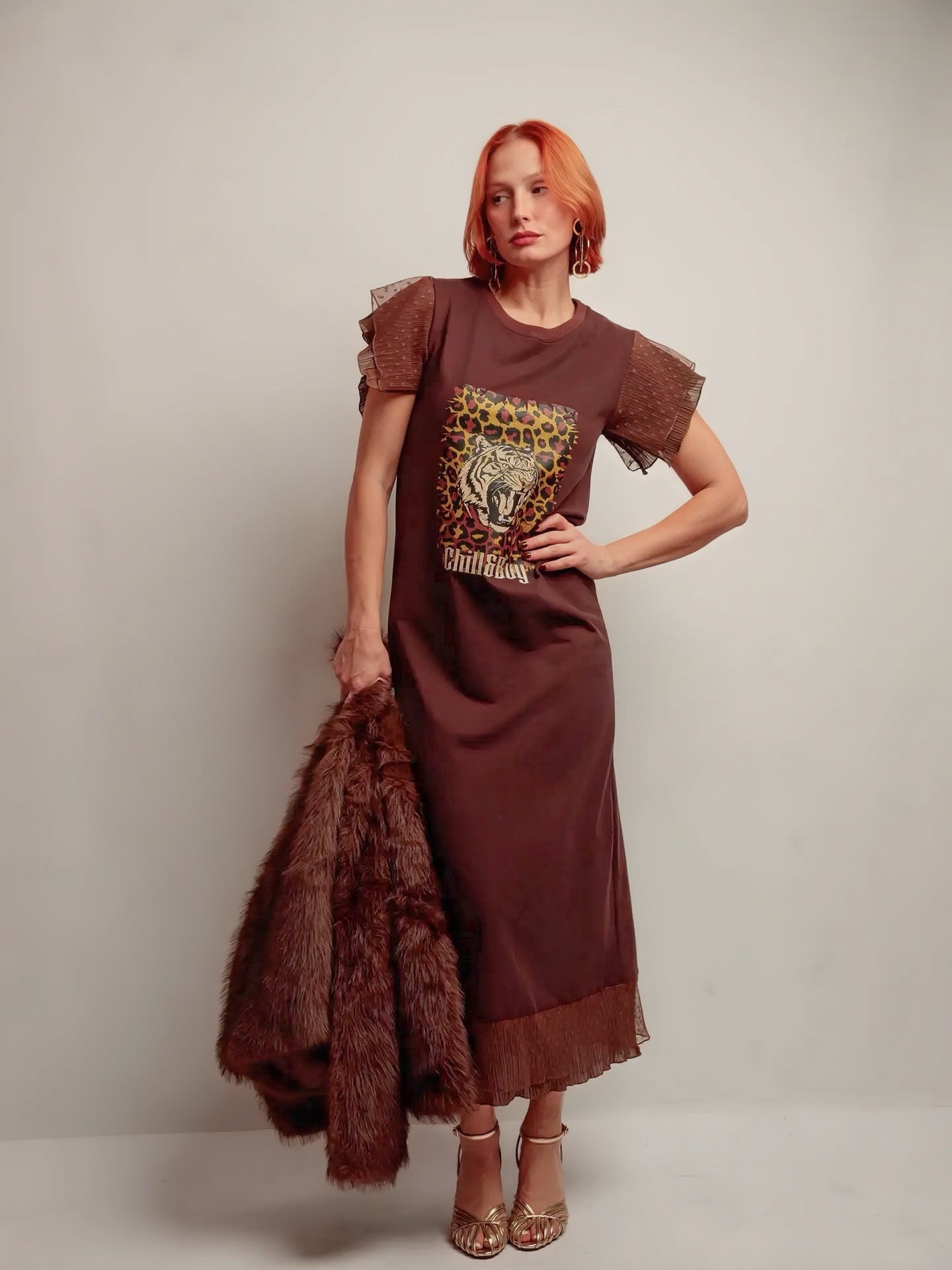 Robe marron imprime tigre