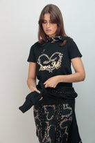 T-shirt noir Loves Me imprime coeur dore