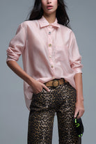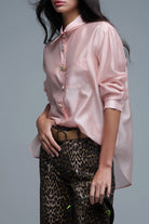 Chemise ample en soie avec médaillon de boutons en rose