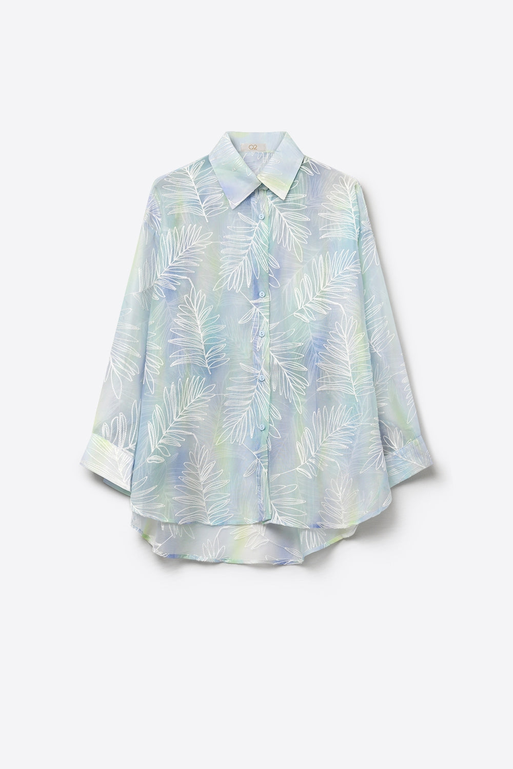 Laissez-vous séduire par cette chemise bleu clair au tissu aérien et à l’imprimé feuilles délicat. Sa coupe fluide et légèrement oversize en fait une pièce idéale pour des looks légers et faciles à composer.