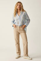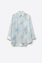 Chemise bleu clair femme imprime feuilles tissu leger oversize
