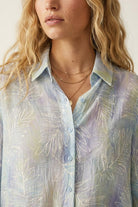 Chemise bleu clair à imprimé feuille translucide avec tissu transparent