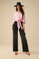 Chemise croisée rose avec nœud
