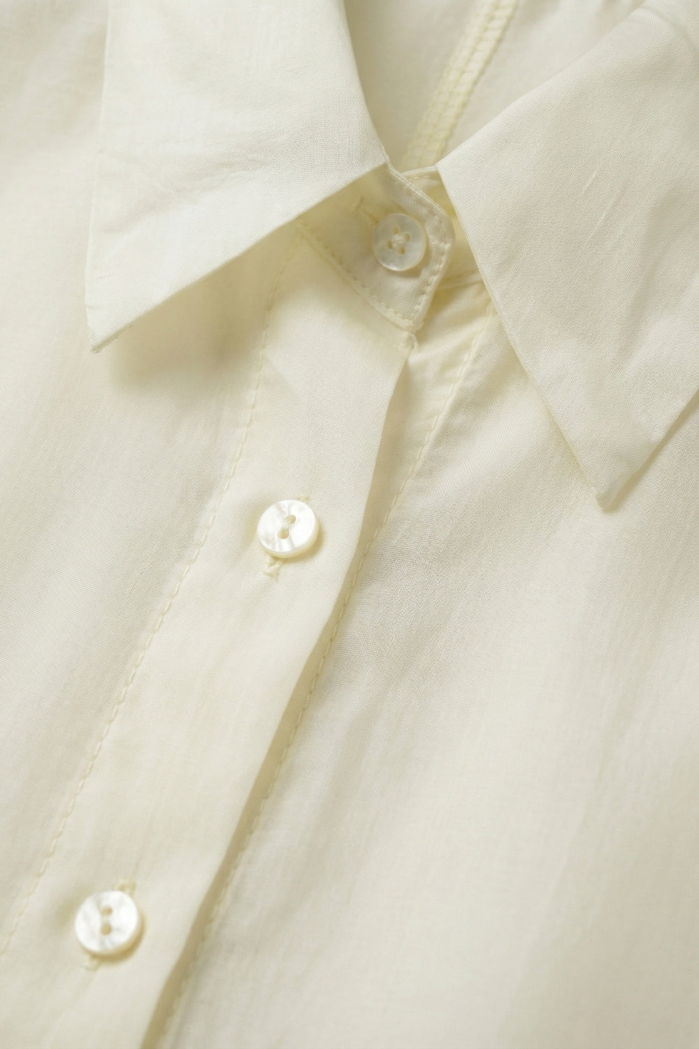 🔹 Détails marquants : Col pointu classique (col polo), patte de boutonnage sur le devant, finition légèrement transparente pour un rendu aérien.