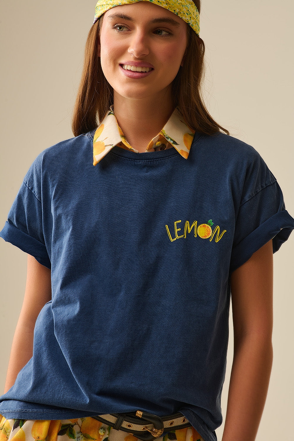 Fabriqué en Italie t-shirt bleu marine avec motif de citron