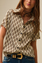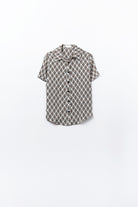 🔹 Détails marquants : Imprimé chaînes contrasté, col polo classique, patte de boutonnage ton sur ton