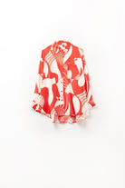 🔹 Détails marquants : imprimé abstrait rouge et blanc, poche poitrine pratique, boutons discrets à l’encolure