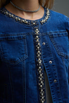 Une veste en denim stretch pensée pour sublimer vos tenues tout en assurant un confort optimal. Ses ornements délicats apportent une touche raffinée, idéale pour structurer une silhouette moderne du quotidien aux occasions plus habillées.