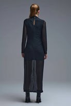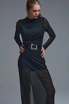 Chic Black Sheer Polka Dot Midi Dress