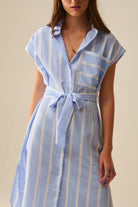 Robe chemise maxi sans manches à rayures bleues et blanches