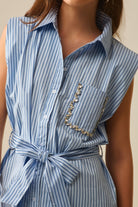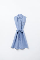 Robe chemise sans manches avec ceinture et poche brodée