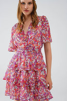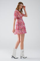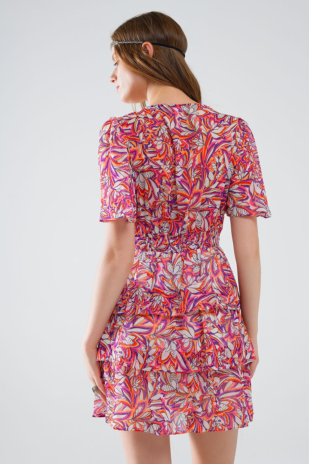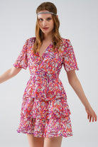 longueur: court. SousCategorie: Robe. collier: Encolure Col V. Manches: Manches courtes. Imprimer: à imprimé floral. Coupent: Ajustement standard. Style: Style romantique. détail: Détails froncés. Tissu: Mousseline de soie. Ceinture: Taille cintrée. runs true to size. S.