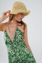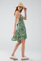Robe courte verte à imprimé fleuri en satin de style boho