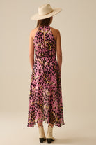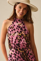 Robe midi à col licou croisé en imprimé animalier rose et noir