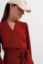 Robe portefeuille courte à décolleté plongeant et imprimé géométrique