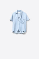 Chemise à manches courtes en tencel avec poche poitrine en bleu