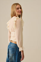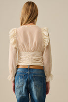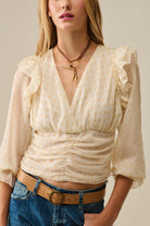 SousCategorie: Blouse. collier: Encolure Col V. Manches: Manches longues. Imprimer: Motif à pois. Coupent: Ajustement standard. Style: Style romantique. détail: Détails froncés. Tissu: Mousseline de soie. Ceinture: Taille élastique. runs true to size. S.