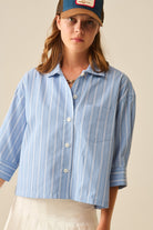 longueur: longueur pantacourt. SousCategorie: Chemisier. collier: Col polo. Manches: Manches trois-quarts. Imprimer: motif à rayures. Coupent: Coupe décontractée. Style: Style de tous les jours. Tissu: Popeline. Poches: Poches sur le devant. Fermeture : Patte de boutonnage. runs true to size. S.