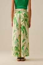 Pantalon à jambes larges avec imprimé aquarelle vert