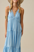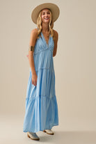 Robe longue fluide avec empiècements en dentelle en bleu clair