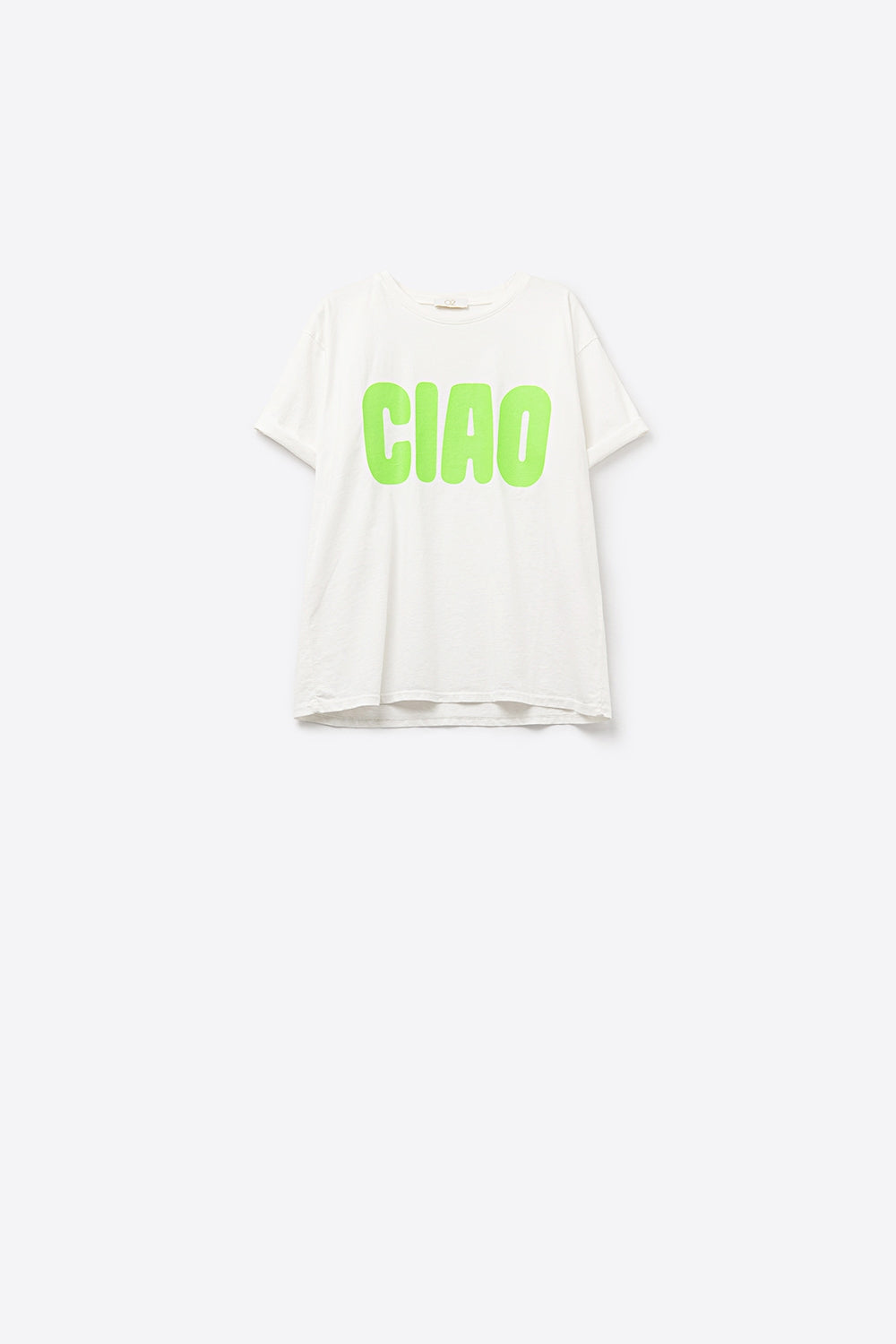 T-Shirt blanc décontracté CIAO avec lettres vertes