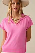 Top à manches courtes de type polo en maille fine Fuchsia