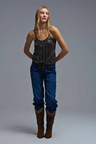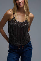 Top Cami brodé à paillettes vintage marron