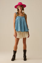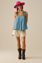 Top en tissu Tencel avec bretelles froncées en bleu