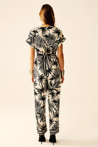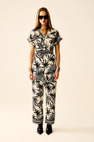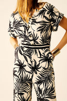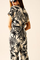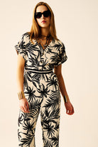 Combinaison à manches courtes avec motif tropical en noir et blanc