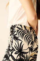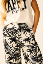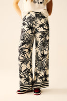 Pantalon à jambes larges en blanc avec détails floraux en noir