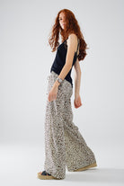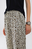 SousCategorie: Pantalon. Imprimer: Imprimé animal. Coupent: Coupe décontractée. Jambe: Large. Style: Style de tous les jours. Tissu: Tissu à tissage léger . Poches: Poches sur les côtés. Ceinture: Taille élastique avec cordon de serrage. runs true to size. S.