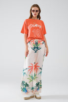 Pantalon droit crème avec imprimé plage et taille élastique