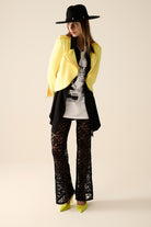 Pantalon évasé noir en dentelle florale