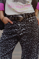 SousCategorie: Pantalon. Imprimer: Imprimé animal. Coupent: Coupe décontractée. Jambe: Large. Style: Style de fête. Tissu: Denim stretch. Poches: Cinq poches. Fermeture : Fermeture zippée. runs big. S.