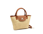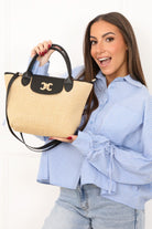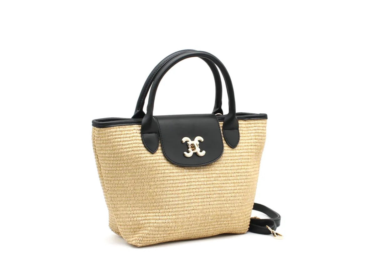 Sac cabas effet paille avec anses noires double C
