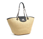 Sac cabas effet paille a chaines et finitions noires femme