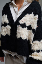Cardigan noir raye maille epaisse paillettes femme