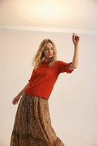 Sa teinte orange illumine le teint tandis que sa coupe équilibrée assure une élégance naturelle sans compromis sur le confort. Une pièce polyvalente à intégrer dans une garde-robe contemporaine et féminine.