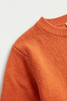 Pull en tricot doux et moelleux orange avec manches à volants