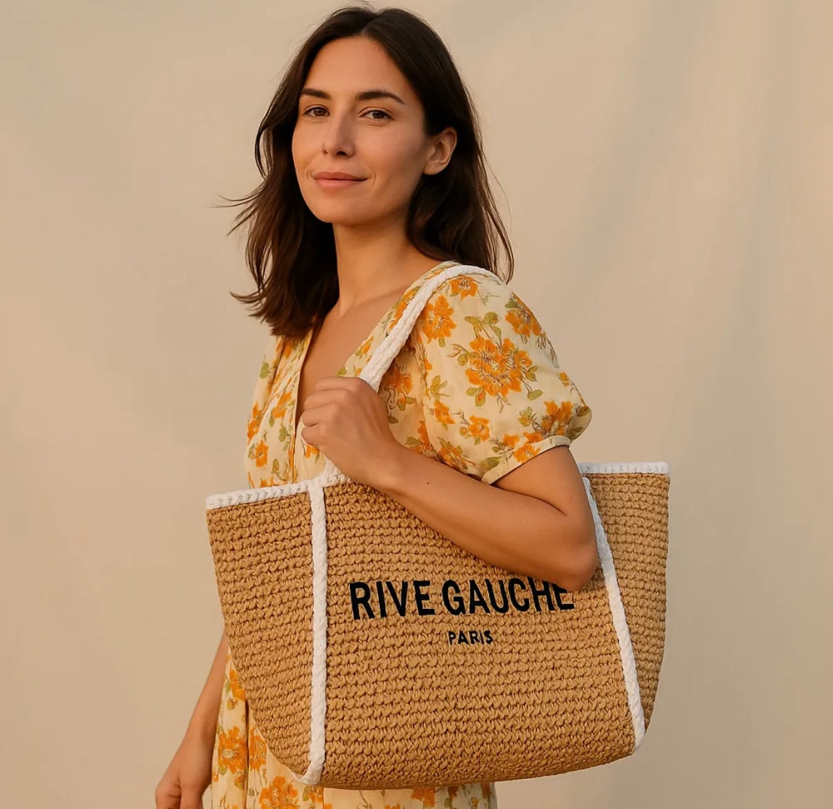 Rive Gauche raffia tote bag – Natural elegance and thoughtful functionality